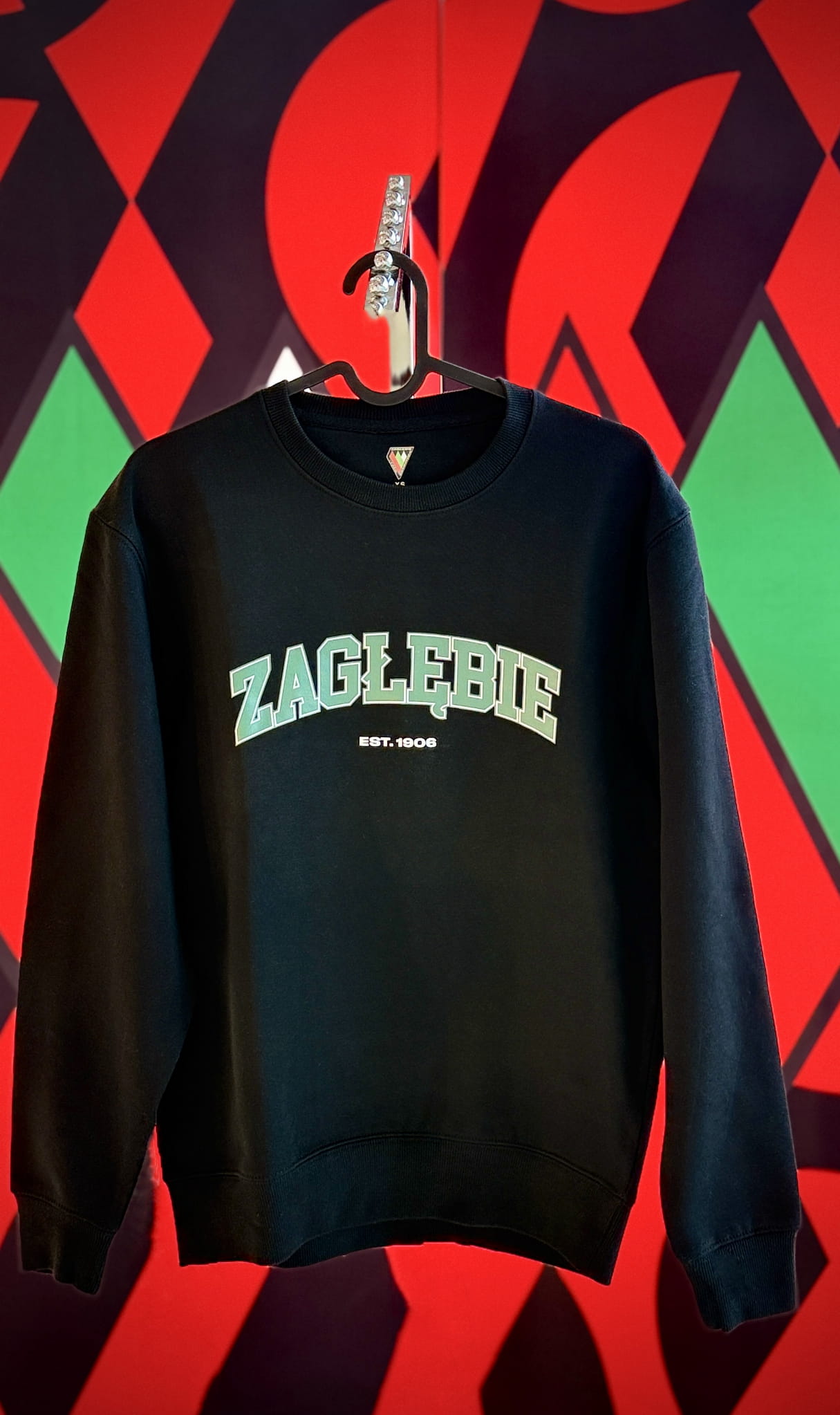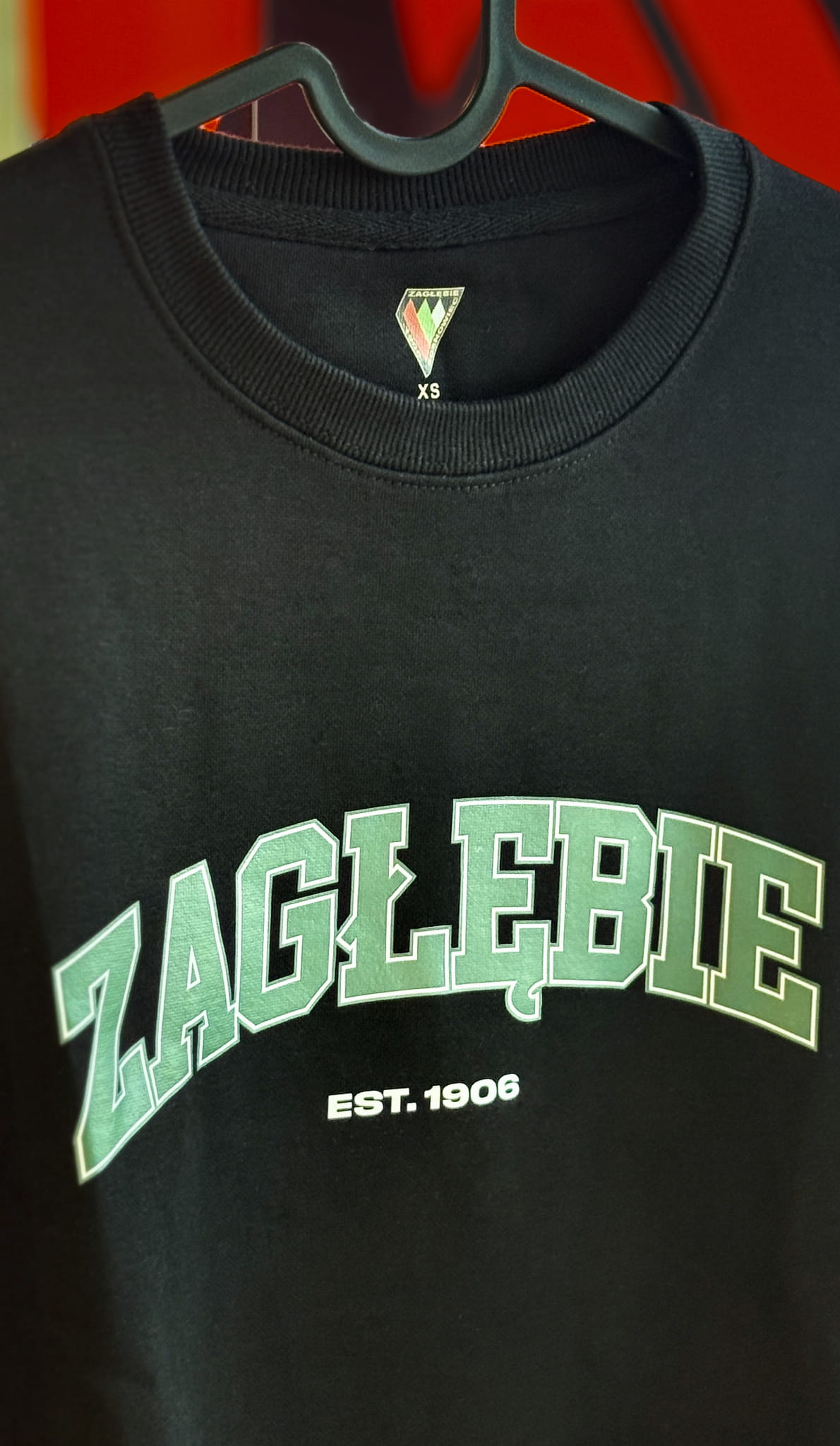 Czarna bluza z napisem „Zagłębie” i rokiem założenia klubu. Wygodna i stylowa – idealna na chłodniejsze dni dla każdego kibica.