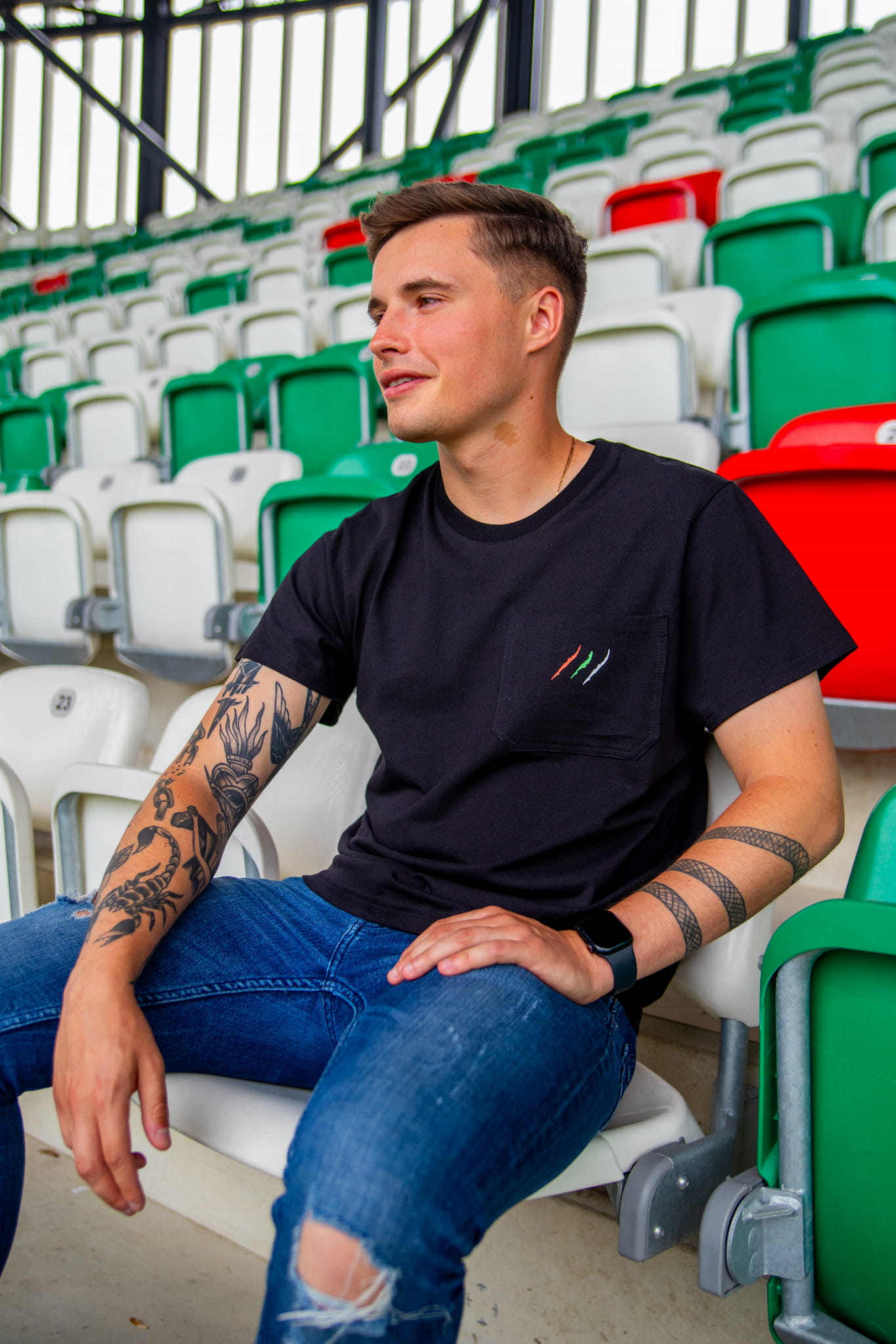 CZARNY T-SHIRT MĘSKI 3 PASKI BARWY