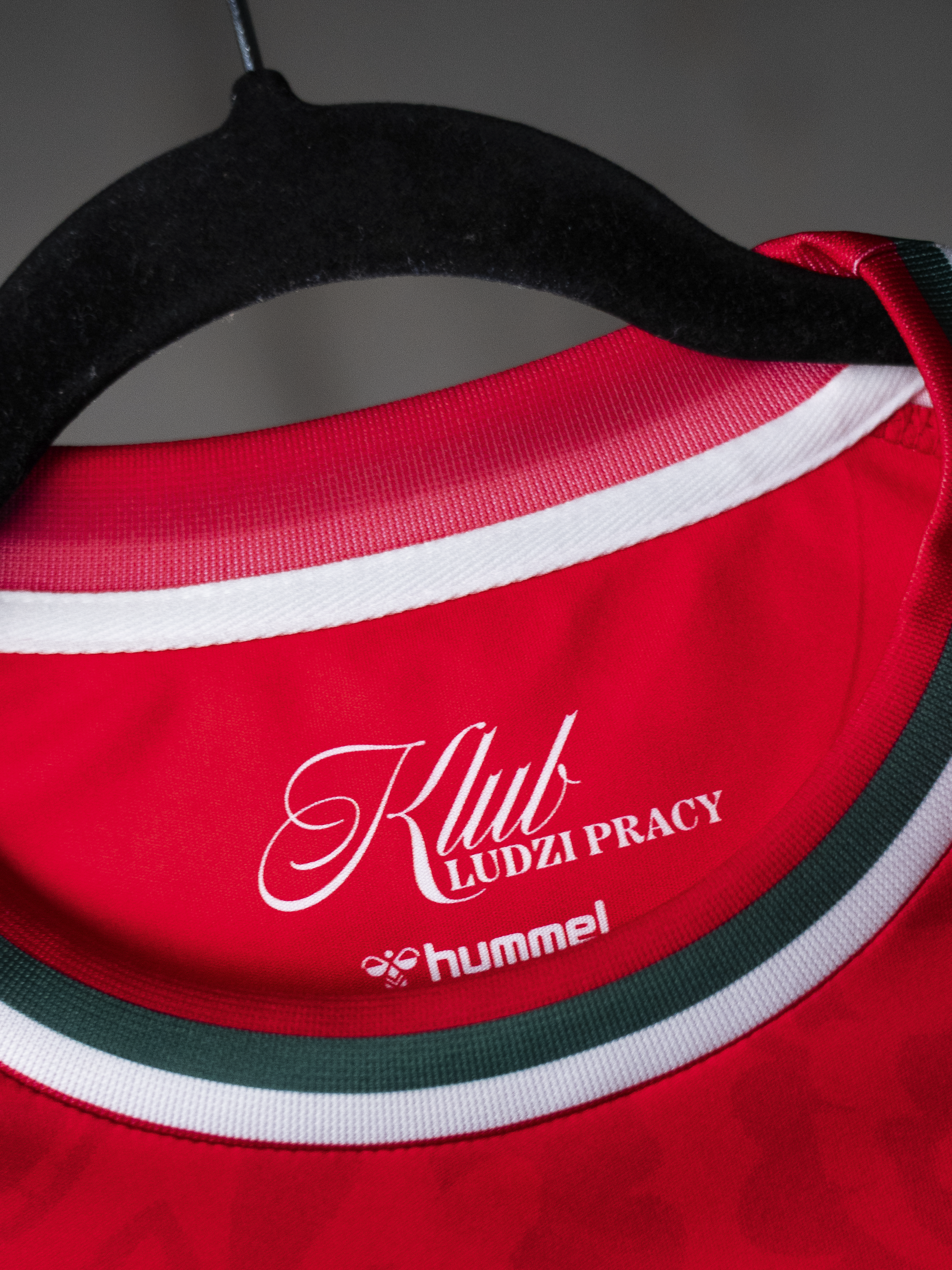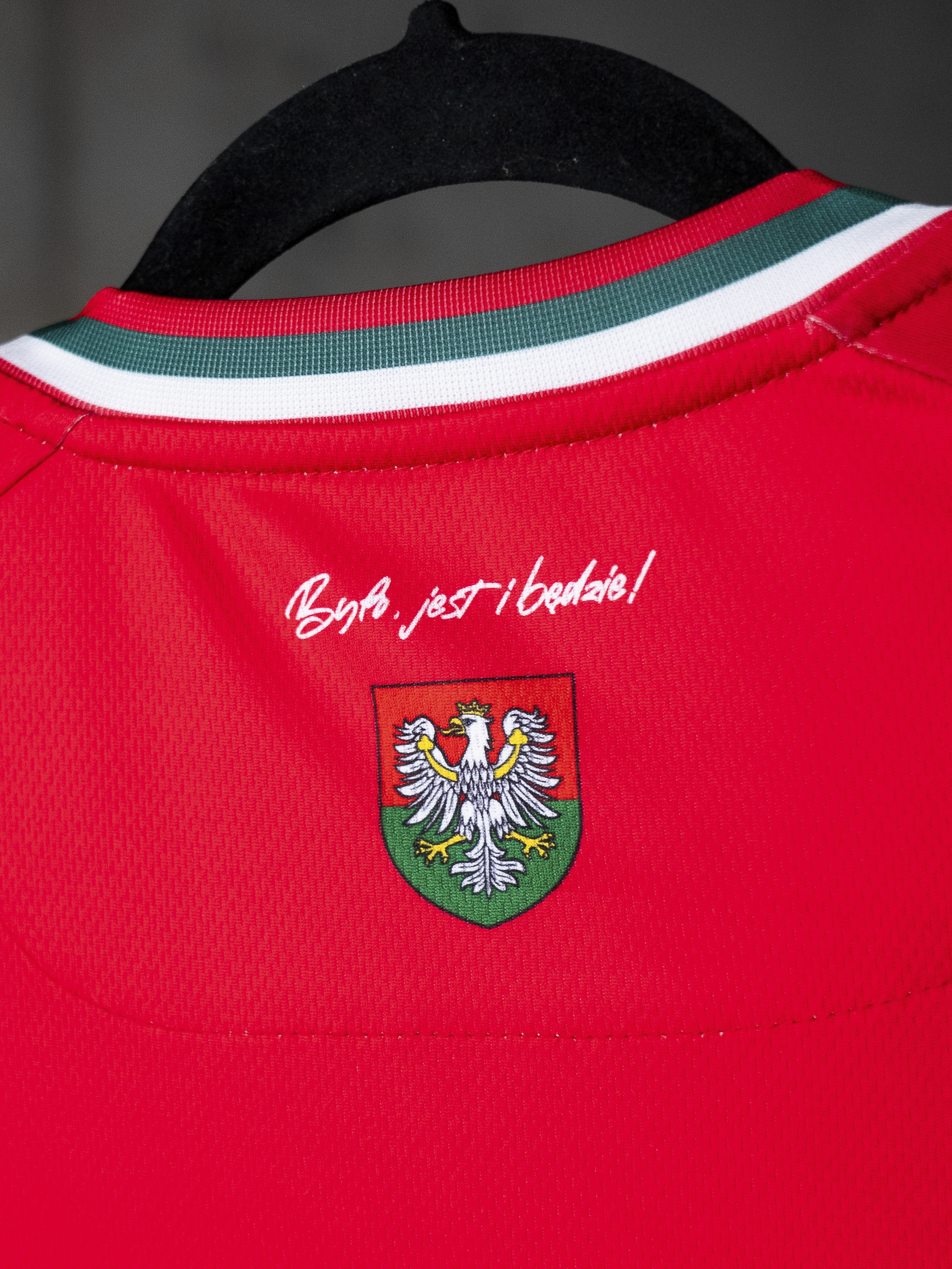 i kołnierzyk zdobią barwy, które są sercem każdego kibica Zagłębia – czerwień, zieleń i biel. Na lewej piersi znajduje się starannie wyhaftowany herb Klubu, który przypomina, że niezależnie od czasów, jedno pozostaje niezmienne – wierność tym barwom.