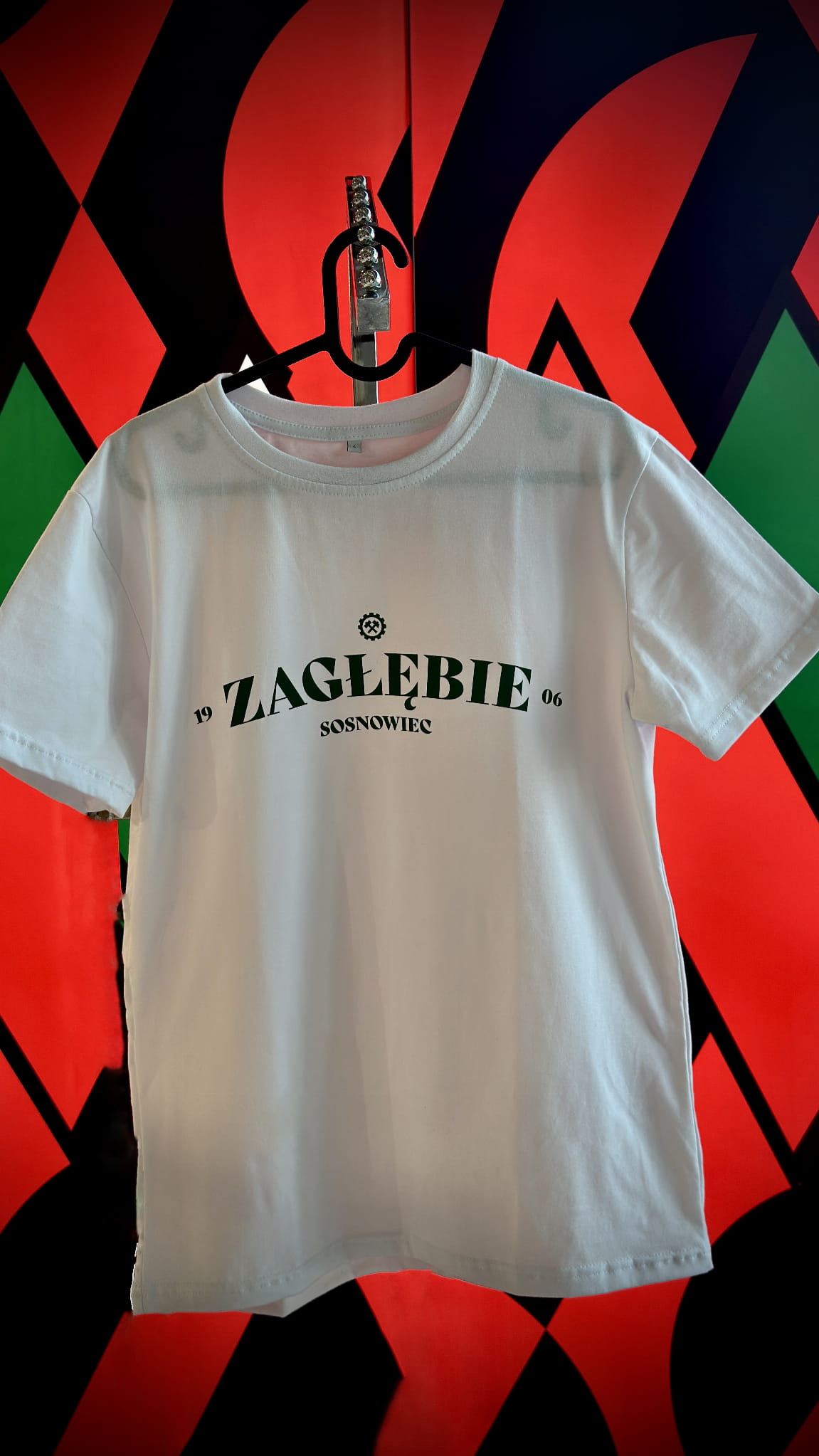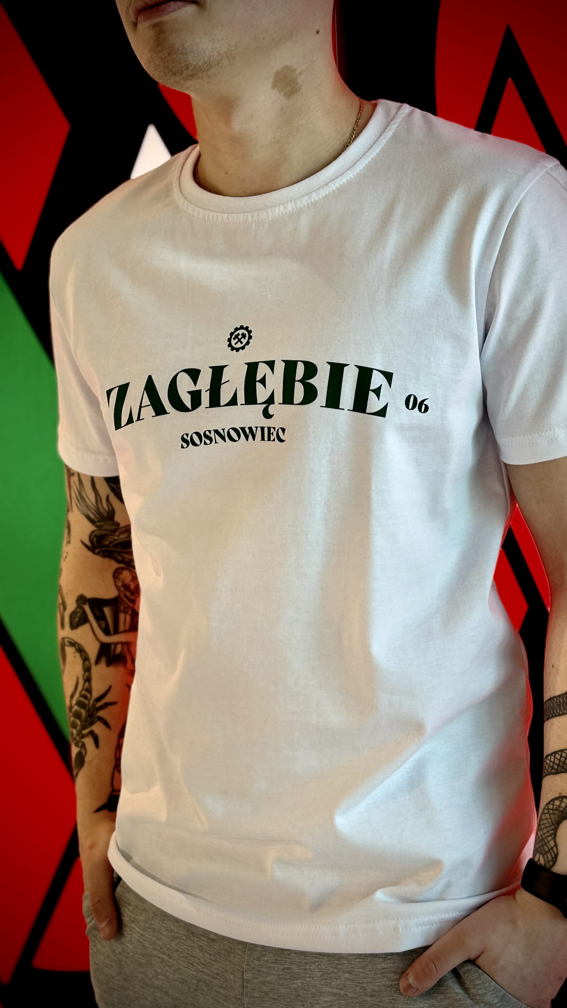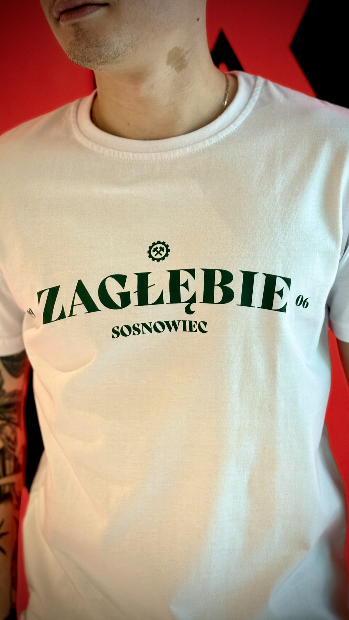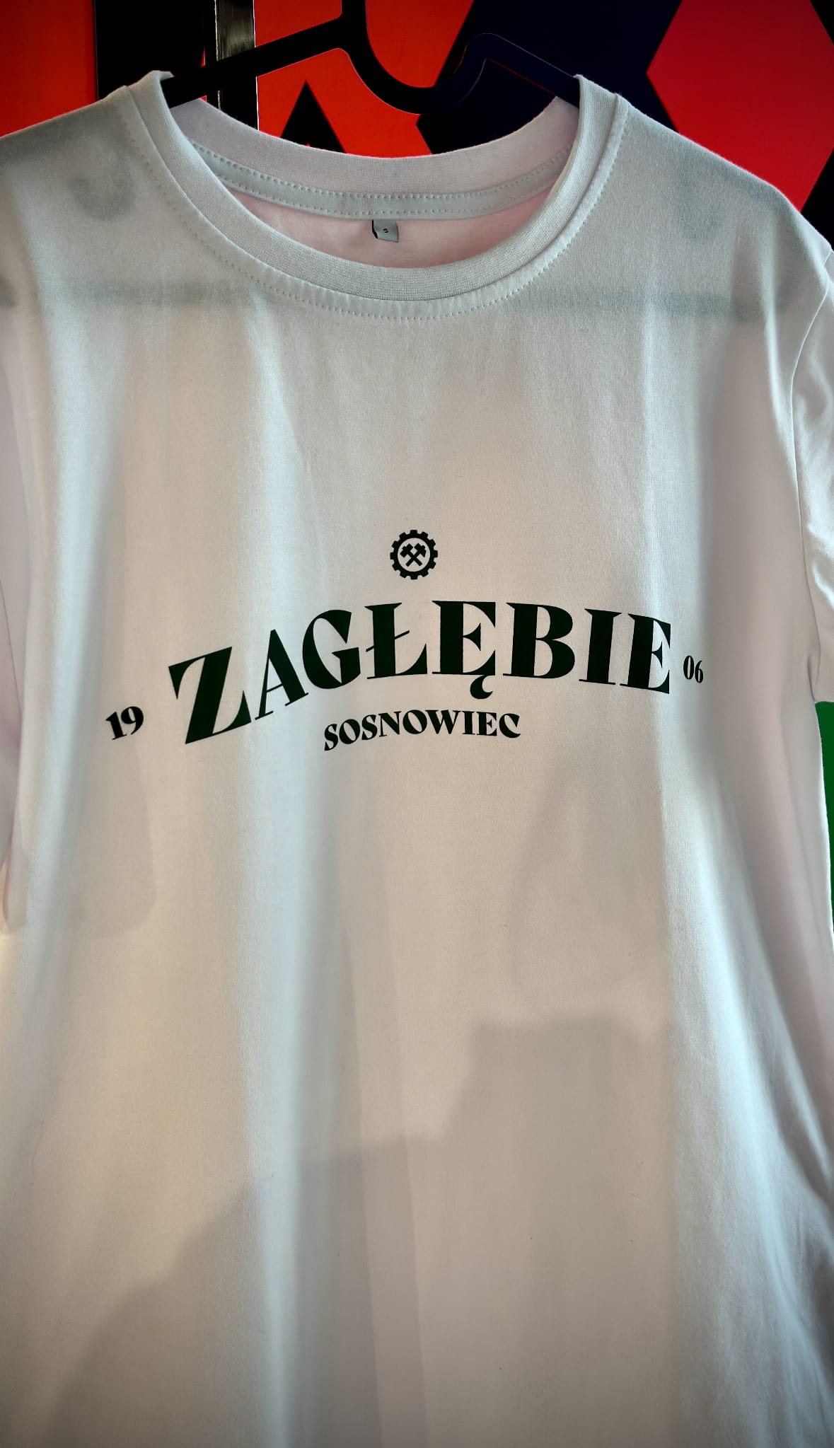 Biała koszulka z napisem „Zagłębie Sosnowiec 1906” w minimalistycznym stylu. Prosty, sportowy design w klubowych barwach sprawia, że świetnie nadaje się zarówno na mecz, jak i na co dzień.